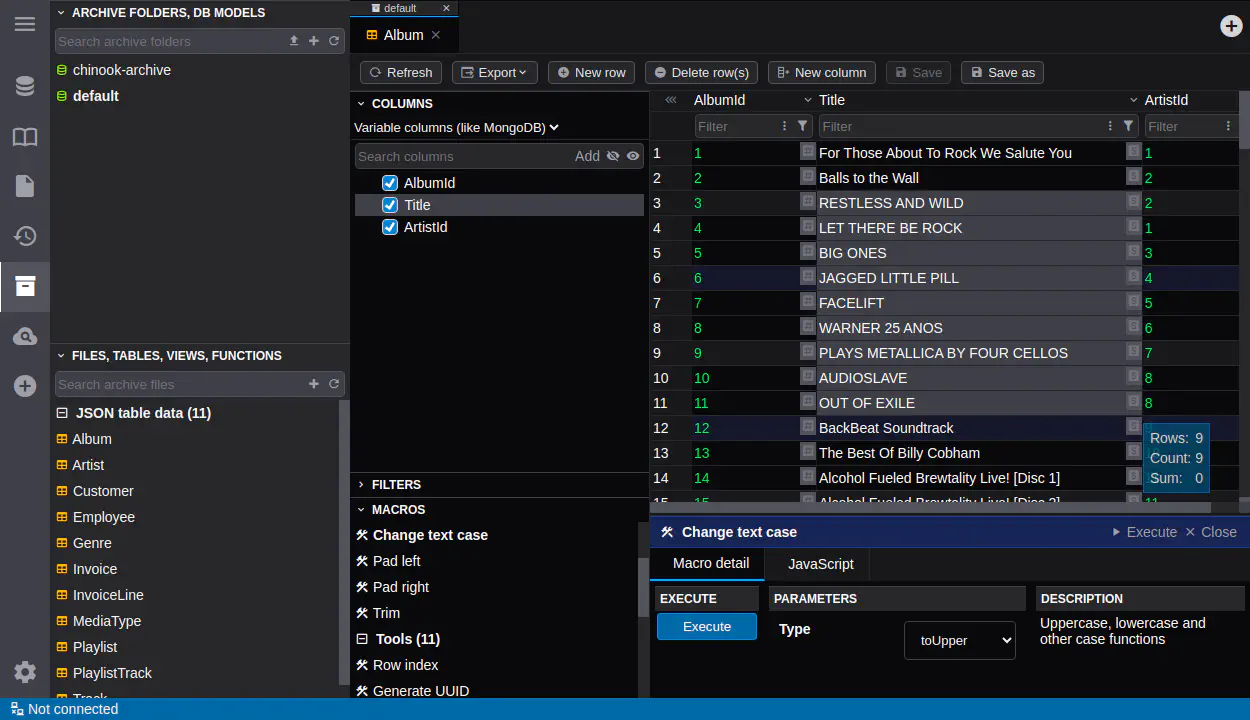 Macros - Apply predefined macros ion selected cells - eg. change text case, remove diacritics, generate UUID.