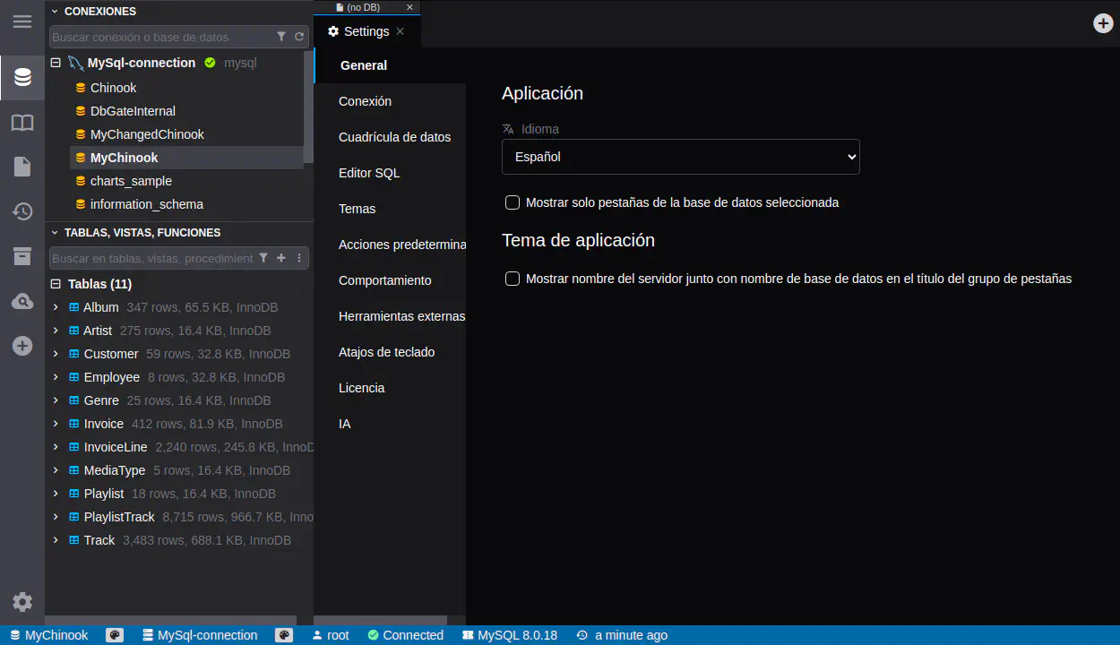 Language detection - in web version, DbGate could detect your browser language and switch to it automatically. But you need to explicitly set this option in settings, as a tool that primarily targets developers, DbGate defaults to English.