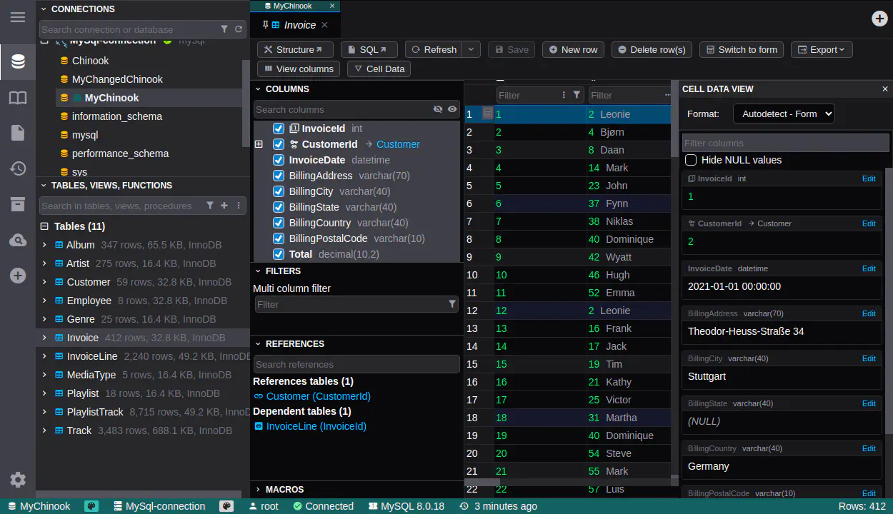 We are proud to announce the release of DbGate version 6.8.2, which brings several important improvements and new features. One of the highlights of this release is the enhanced cell viewer, with form view support.