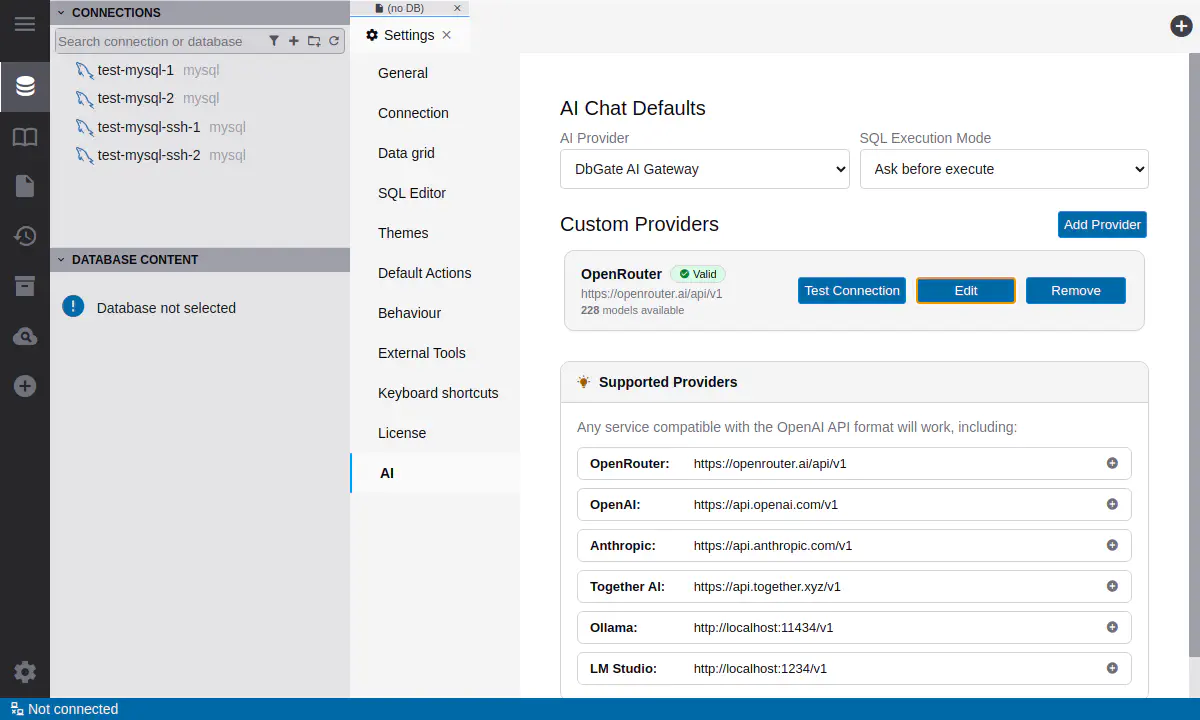 LLM providers settings